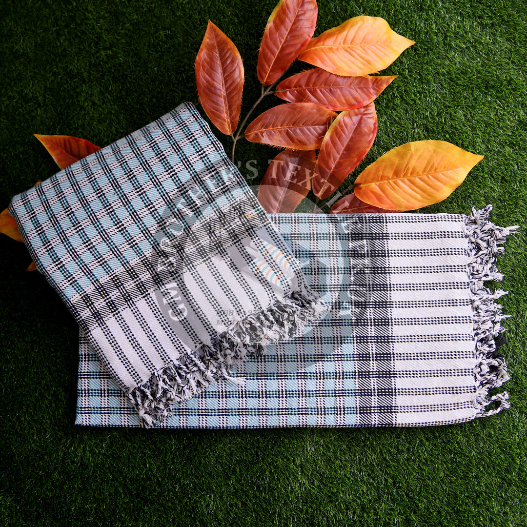 Gm Brothers Textile Introduces a superior quality Handmade cotton khais with unique interwoven patterns. This product is durable,light weight & easy to wash.Detail:[ ] Material: 100% pure cotton● Gemotrical design: check pattern ● Dimensions: [ ] length: 115 inch (292cm) Single Piece[ ] Width: 54 inch (137cm) Single Piece[ ] Weight : 5kg (4 Pieces)[ ] Colour: black & white● king Size● Product care instructions: hand and machine wash only. Don't use hard brush● Recommend: all weathers