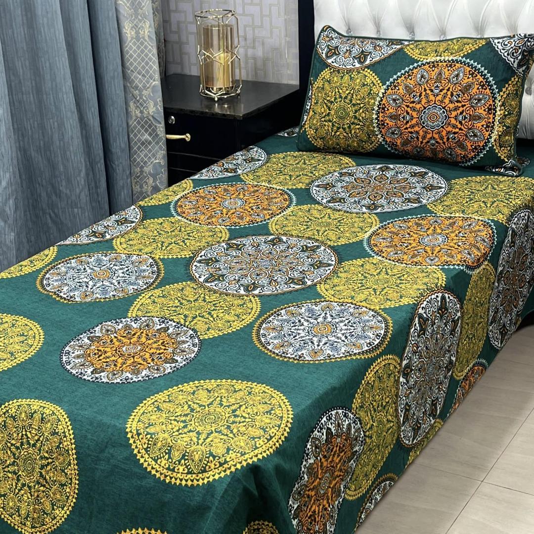 Vibrant Printed Crystal Cotton Single Bedsheet Set - 2Pcs